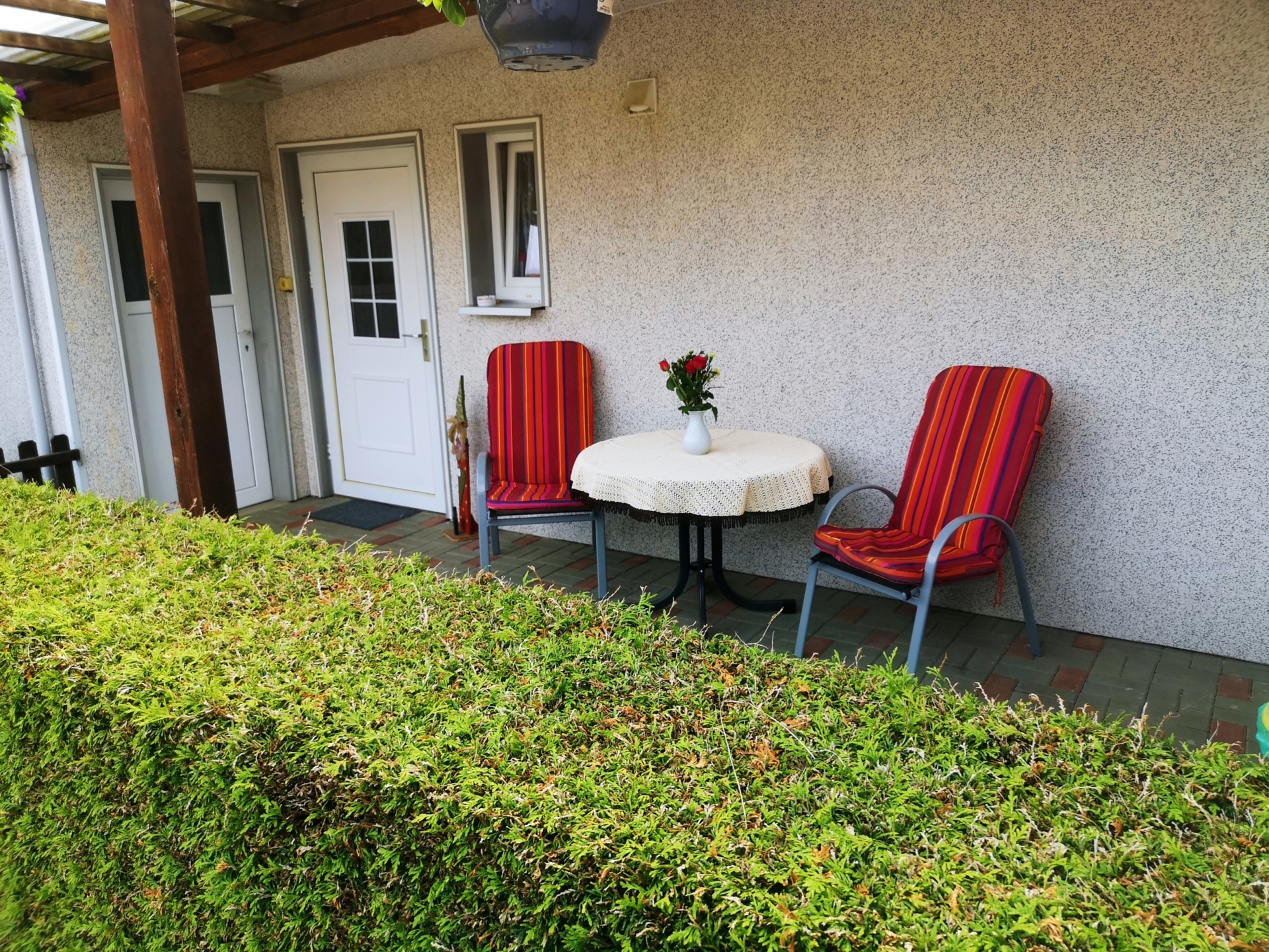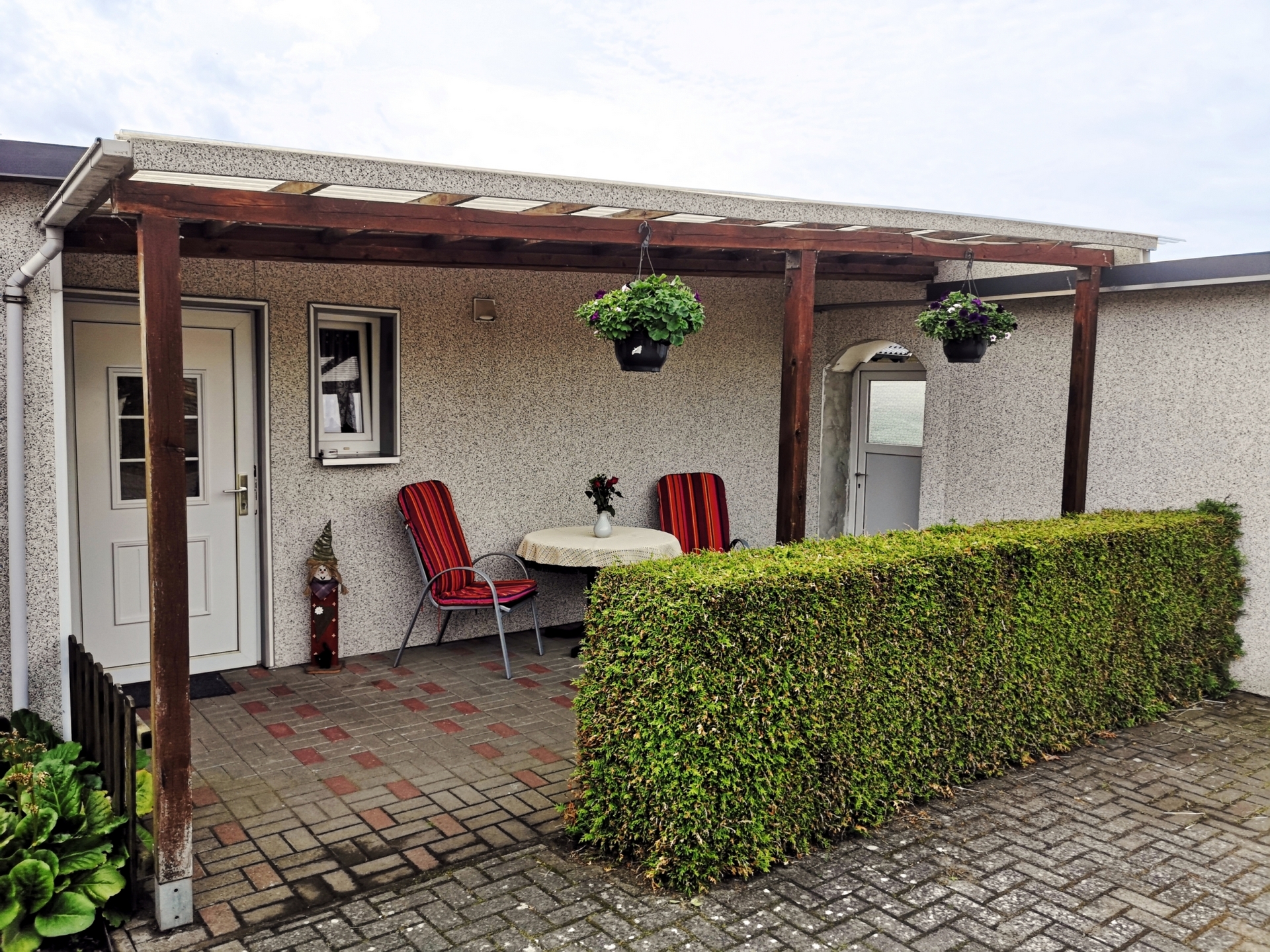 überdacht, ausgestattet mit Grill und Gartenmöbeln